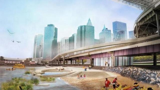 An artist’s rendering of the proposed Brooklyn Bridge Beach.