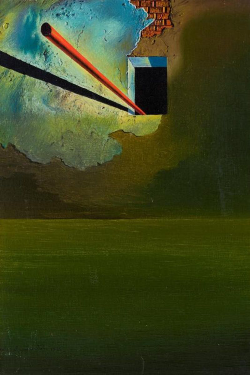 The piece, Untitled, depicts a flagpole mast emerging outwards from a darkened window. The pole casts a shadow on fragments of a dilapidated brick wall, set against a cloudy sky, and a barren landscape. “This is the first known painting in which Dalí reveals to the public the combination of two new recurring obsessions that appear in his work in 1932: a suspended mast, and a window on a wall shown from an outside perspective displaying the darkness of an interior,” said Dalí expert, Nicolas Descharnes in a press release.