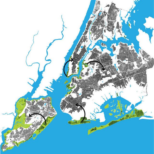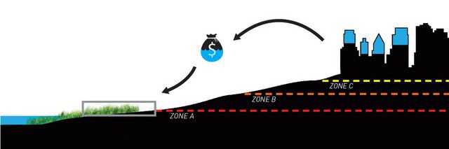 The aftermath of Hurricane Sandy saw a surge in proposals and debates about hard versus soft infrastructure to battle the next storm. Governor Cuomo also proposed to spend $400 million to buyout properties wrecked by the hurricane and permanently preserve the flood prone land as undeveloped coastline. However, there is no long term plan in place to fund the buyout. A proposal put forth by Susannah Drake, founding principal of dlandstudio is meant to materialize this plan.