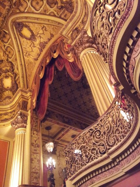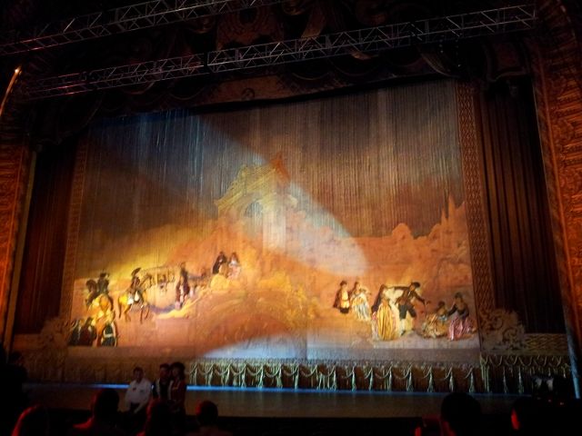 After our brief detour, we headed back to the theater to find our place amongst the 2,000 small cushioned seats set close together, personal space clearly not the premium then as it is now. Overhead, the second and third tier balconies were also beginning to fill with guests. Smart phones dotted the otherwise dim theater as guests took pictures or checked in online.