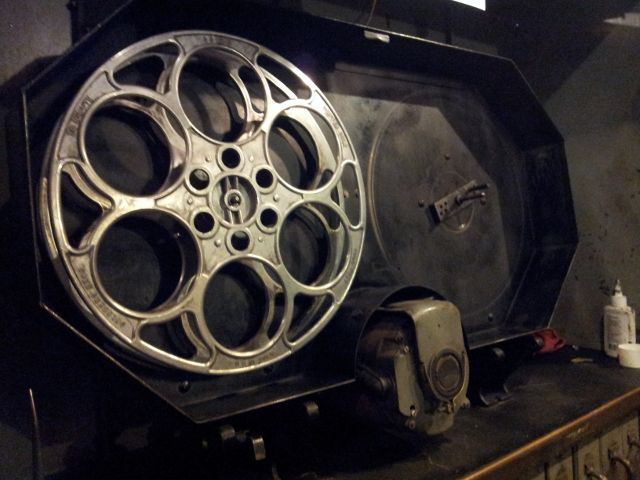 Before heading into the theater itself, we took another set of carpeted staircases down to the basement lounge, which, in the theater’s heyday, was fully furnished with sofas, chairs, potted plants, and other niceties necessary for relaxing. One might, for instance, travel to downtown via streetcar, deposit the children in the playroom with the on-staff nurse, who would watch the little ones as they went down the slide, played with toys, or played make-believe in the sandbox. If you arrived early enough, you could walk down the street for a bit of shopping, then return to the lounge to rest and wait for the next film to begin showing.