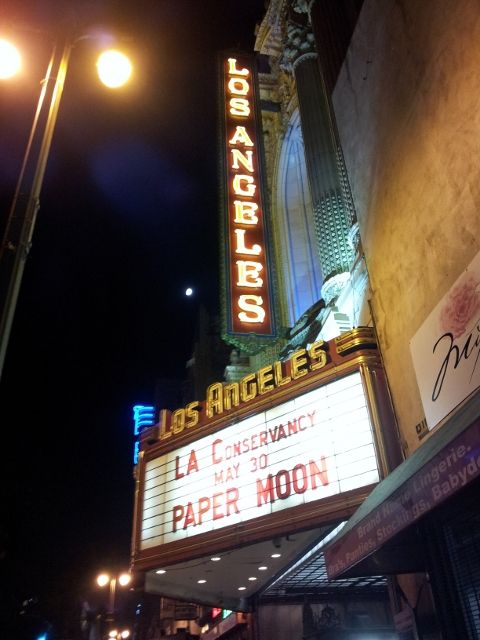 We handed over our tickets for the Los Angeles Conservancy’s Last Seats Remaining screening of the 1973 film Paper Moon, starring Ryan and Tatum O’Neal. In the hazy light of dusk, it didn’t take much to imagine being back in the 1930’s, the excitement of opening night electrifying the night air. The glamorous moviegoers dressed to the nines, anticipating so much more than a simple movie viewing experience – expecting to see and be seen.