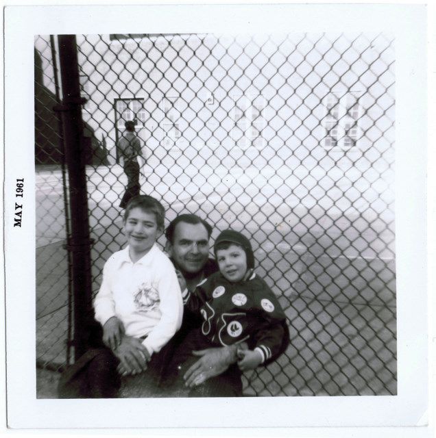 My dad Art (right) with his father and his brother Irwin. Taken in front of their home in Coney Island. PS 188 is visible in the background.