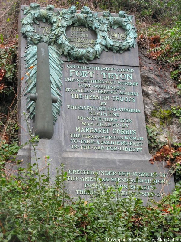 The last remnant of Fort Tryon Hall is a memorial plaque Billings funded in 1909. The large bronze and granite plaque commemorates Fort Tryon, the Revolutionary War stronghold that once occupied the site, and the brave soldier Margaret Corbin. When Margaret Corbin’s husband John, a cannoneer, was killed in battle, she took up his charge, cleaning and loading the canon until she too was wounded. For her efforts, Corbin became the first woman to receive a military pension and be buried at West Point. As the memorial reads, it was “erected under the auspices of the American Scenic and Historic Preservation Society through the generosity of C.K.G. Billings.” The main entrance and plaza of Fort Tryon Park were renamed for Corbin in 1977. You can find the memorial in the retaining wall north of Linden Terrace.