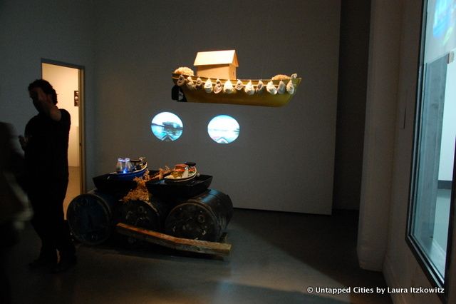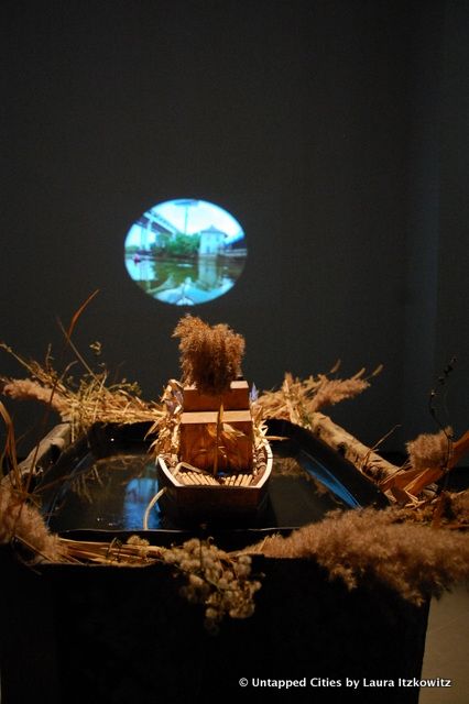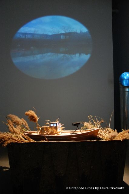 So it’s quite impressive that over the course of the six days during which the art project was open to the public, over five hundred people came out to Newtown Creek to participate. Now, at one of the galleries inside the building at 111 Front Street in DUMBO, three of the little boats project their voyages onto round porthole-like screens in front of them. There’s something beautiful about the way they ride the waves, dip under the green water, and encounter obstacles, like an old red chair floating in the water. Participatory art projects like “Remote Voyages” draw our attention towards the city’s overlooked sites and show the beauty inherent in even the most polluted areas.