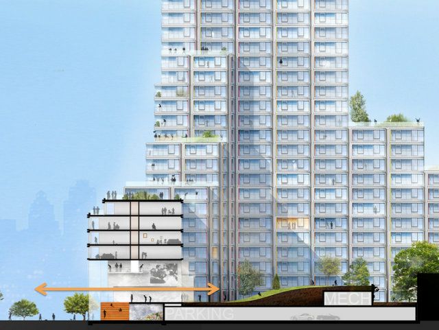 Developed with TF Cornerstone, there will be 1,193 new apartments (a mix of studio, one, two and three bedroom units), 796 will be affordable apartments run by Selfhelp Community Services) and 696 will be targeted to moderate and middle-income families. From those, 100 units will be set aside for senior citizens who also meet the financial criteria.