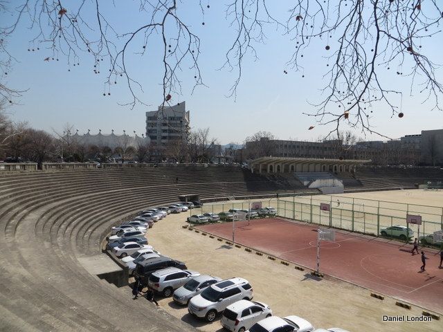 What is going on? Most of the material on Kyung-Hee’s architectural history is in Korean. Dr. Choue, in trying to create a truly global university, was likely emulating the campus architecture within a paradigmatic global city, New York City. What might seem at first glance to be to be an example of post-modern, de-contextualized trickery was, at the time, a quite earnest effort to cultivate an international perspective within a new university.