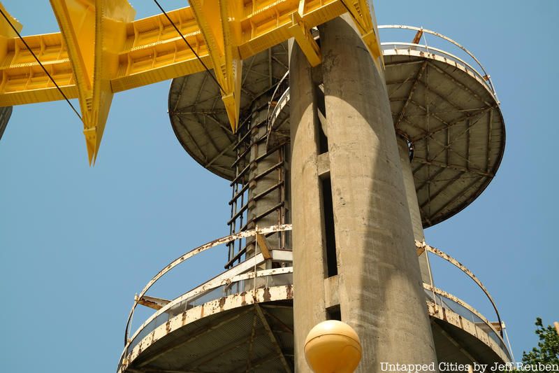 Inside the observation towers. Photo by Robert Fein, provided to Untapped Cities for a 2015 article. Fein is one of the passionate members of the 3000+ group People for the New York State Pavilion on Facebook
