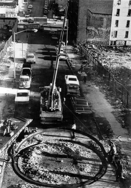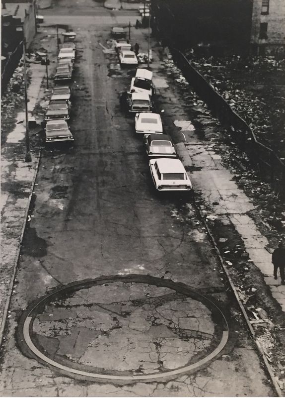 Thus, in 1970, he negotiated with the City’s Park Administration to install a piece in New York. The Administration told him that for $250, they would give him a permit to work on a street in the Bronx. The site they landed on was a down-trodden, dead-end on 183rd Street. Serra described the location as “sinister, used by local criminals to torch cars they had stolen.”
