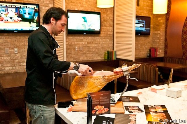 At Spring Sips Rioja, the Gastro Bar’s first wine tasting of the season, Chef Echapresto offered up a selection of his finest tapas to pair with the best wines from the Rioja region in the northeast of Spain. Traditional flavors, such as Manchego cheese and tuna tartar, got a modern update in their presentation. Fresh bread, olives and Marcona almonds shined in their simplicity. The award-winning organic extra Virgin olive oil from the Bea Family Estate was some of the purest olive oil I’ve ever tasted. At the same table, a server carved up thin slices of Jamón Ibérico. I learned from Caroline Helper, one of the event organizers, that the reason the ham has a subtle woody flavor is because the pigs are fed entirely on acorns. In addition to all this, waiters brought out trays of Manchego croquetas, roasted peppers on puff pastry with tomato veil and cheese slivers, marinated salmon tartare with pickled onions and soy and other traditional tapas with a modern twist.