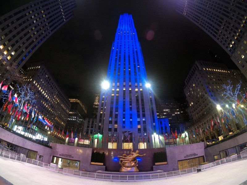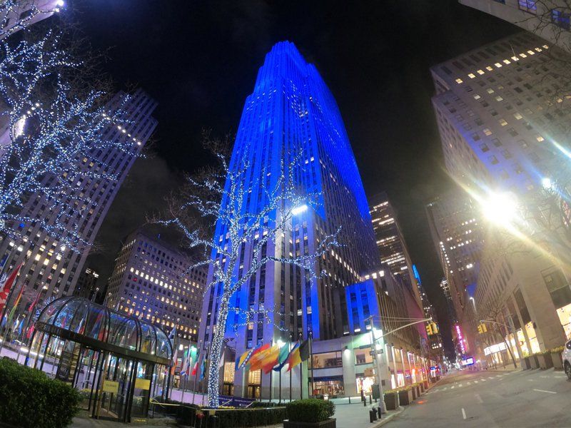 Following last week’s inaugural #LightItBlue event, where landmarks all around the country were lit up in blue to honor frontline workers, Rockefeller Center joined the party last night for the weekly event taking place now every Thursday. The iconic 30 Rockefeller Plaza building was lit entirely in blue.
