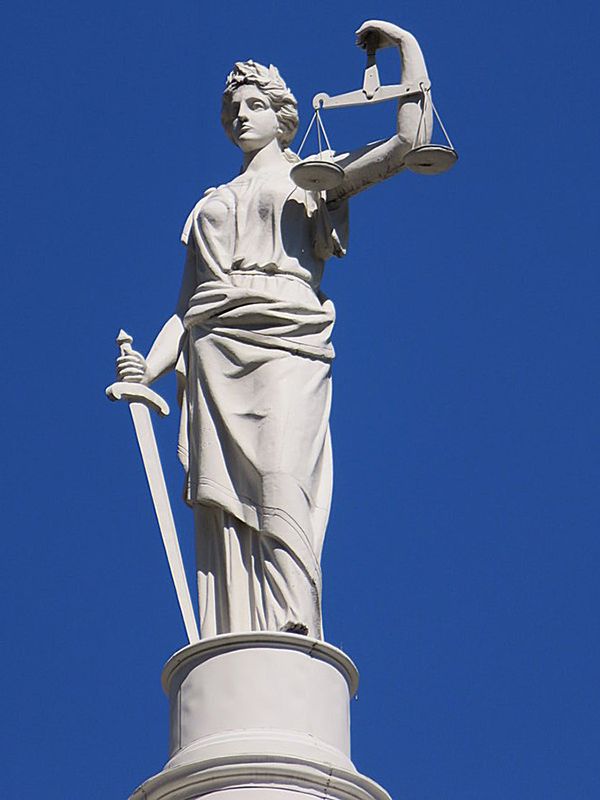 Lady Justice is a popular figure that tops municipal buildings in the Western world. This personification of justice is often depicted holding a scale to represent fairness and balance under the law; her occasional blindfold represents impartiality. Draped in a Greco-Roman toga, New York’s Lady Justice atop City Hall holds a scale in her left hand but wears no blindfold. A sword in her right hand symbolizes swift justice.
