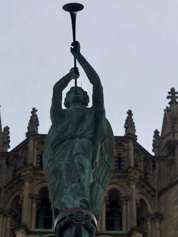 In February 1996, during a winter storm with 45-mile-per-hour winds, the horn of the statue blew off and damaged a white Mercedes parked nearby. The car was repaired but the horn was unfortunately irreparable. A new horn was cast and installed in 1997. The original trumpet is encased and on display in the Riverside Church Archives room.