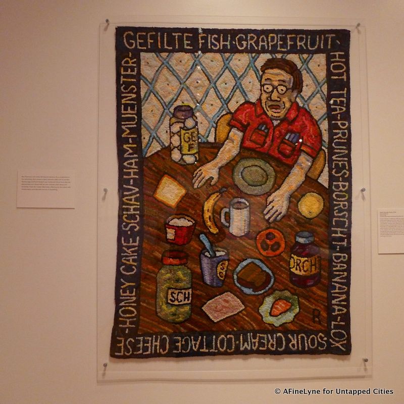 Continuing with a plethora of artistic endeavors, she also has a rich artistic life beyond cartoons. She draws on labor-intensive crafts such as painted Pysanky eggs, hand-hooked rugs, and the creation of little books, reflecting her fascination with miniaturization and alternate avenues of storytelling. In the above photo, Roz shares hand-painted eggs that ended up being a cover of The New Yorker Magazine, entitled Cartoon Pysanky. The decorated Easter eggs are often created for Ukrainian religious occasions, and believed to have talismanic powers. Roz has made the practice of creating her storytelling eggs in a free-form style of her own.