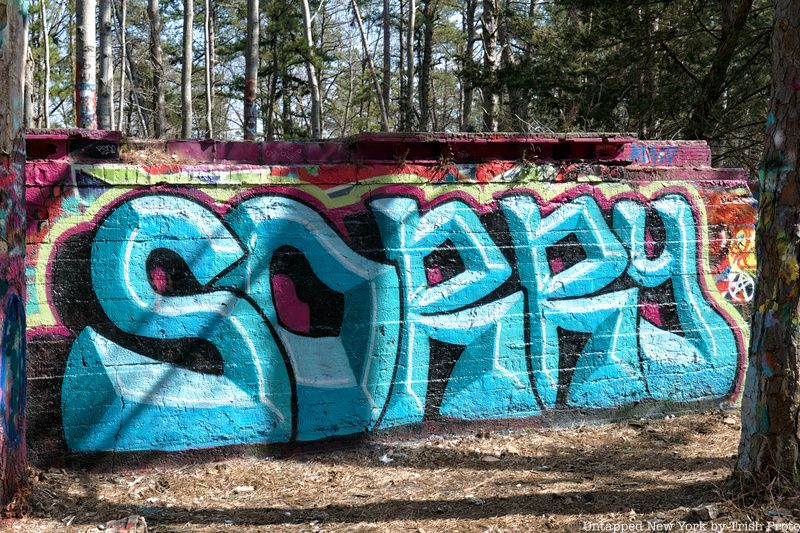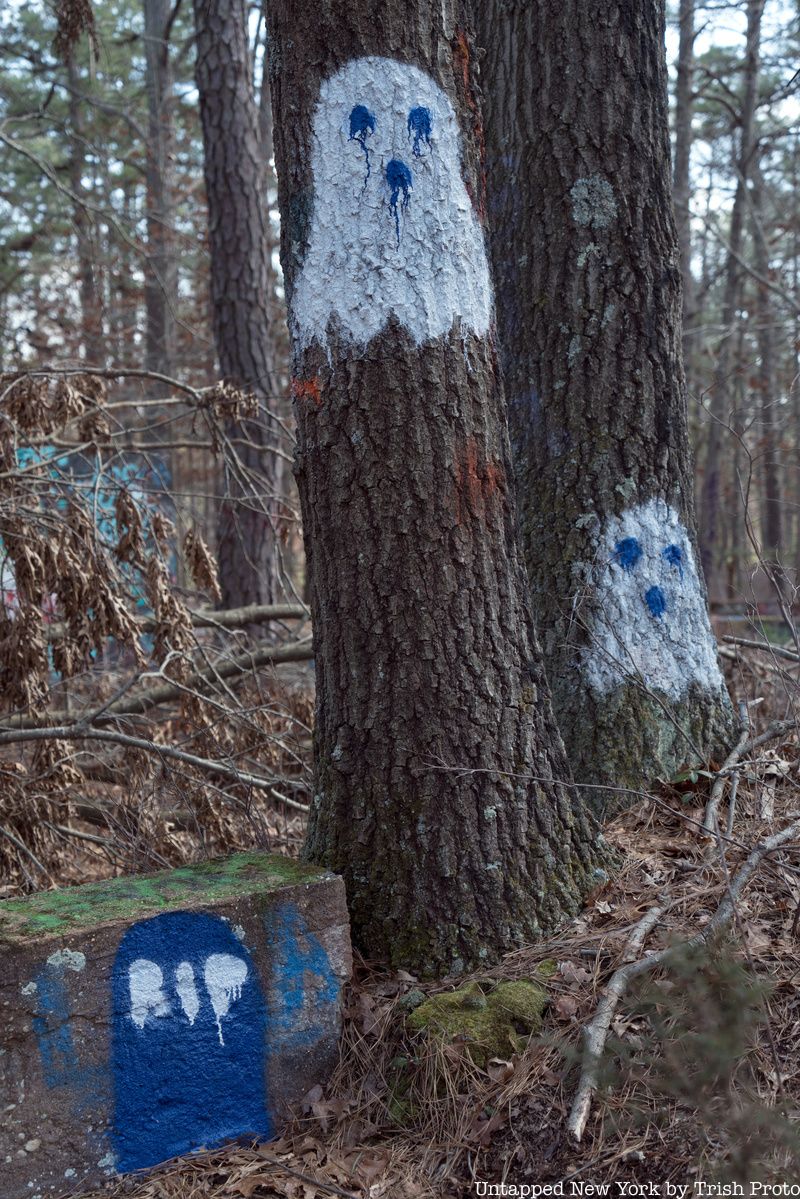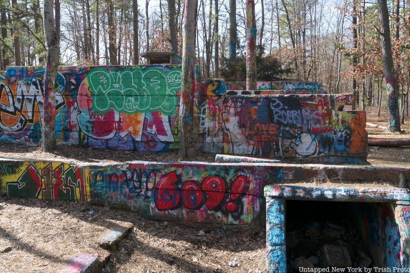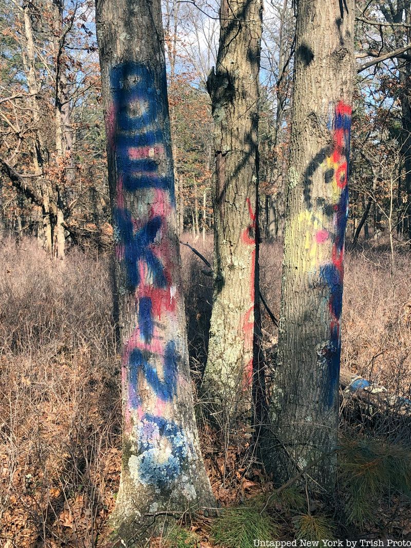Today, the ruins of Brooksbrae have become a popular hiking destination for locals and tourists alike. It’s especially popular with urban explorers and ghost hunters. Despite its full coverage of graffiti, the site isn’t neglected. In fact, Manchester Township recently hosted a volunteer clean-up of the site to remove litter. Up for a walk in the woods? When setting out to visit the site, which is at the edge of the Brendan T. Byrne Forest, make sure you know where you’re going. The site is out of the range of cell service. You’ll know you’re on the right path when graffiti starts to appear on abandoned railroad tracks, trees, and the paved road. Always remember to leave no trace. Check out more photos of the site below:
