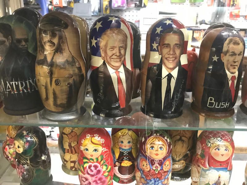 The most popular Russian doll at the moment? Donald Trump, who is displayed next to Putin. The irony does not seem lost on anyone. The owner also has an eBay channel where he sells a set of five Republican presidential dolls, Trump, George Bush Sr., Ronald Regan, Theodore Roosevelt and Abraham Lincoln.