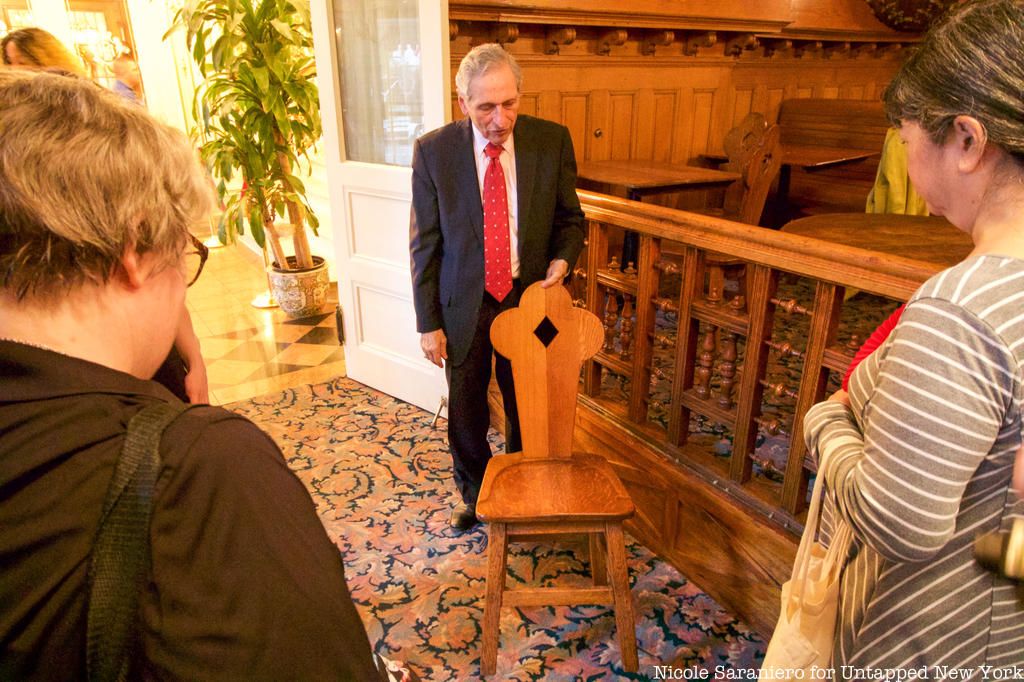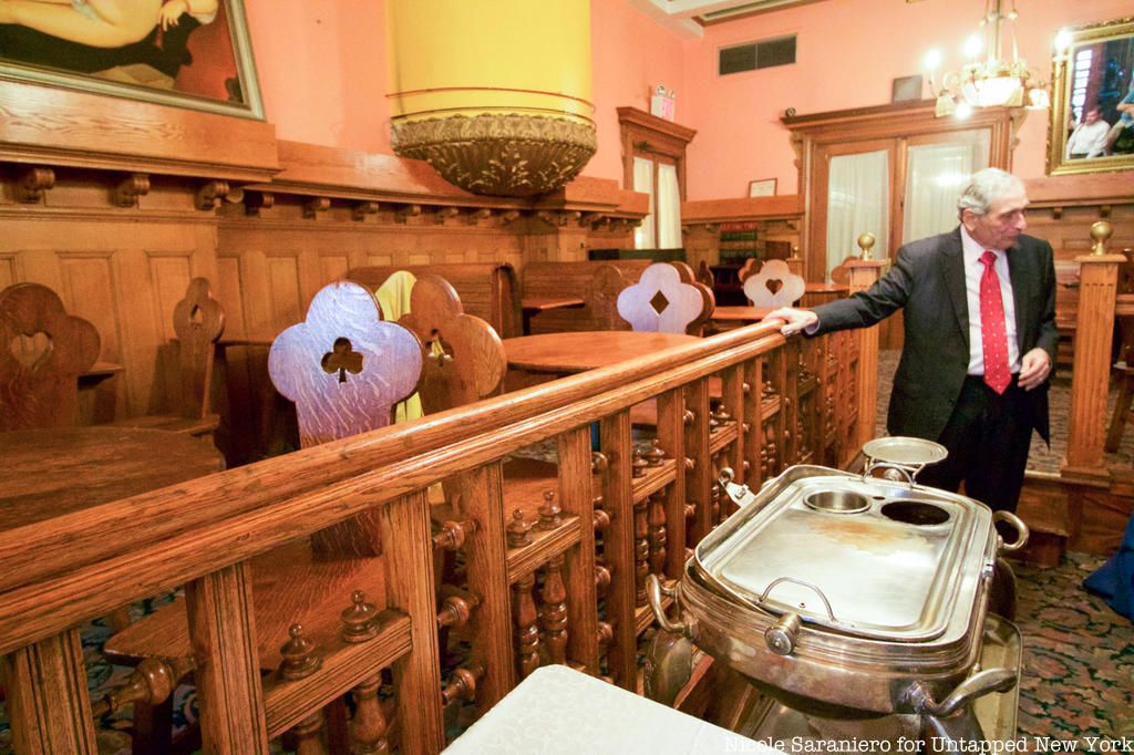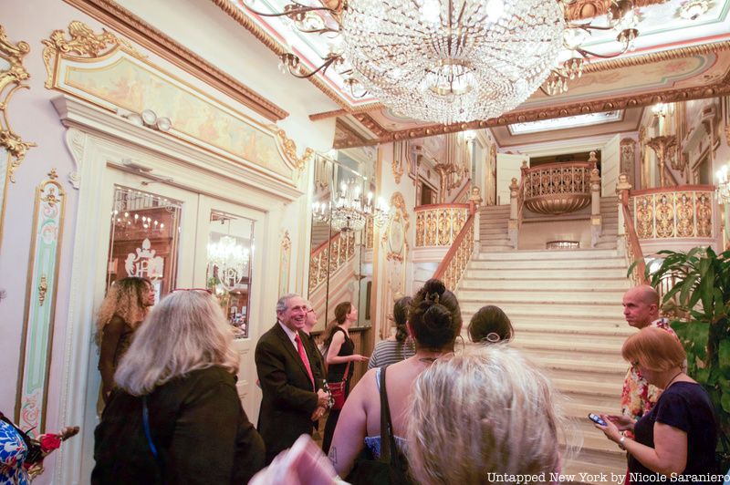 While revealing the history of the former vaudeville theater, Mr. Halkias shared fascinating stories of its restoration with first-hand knowledge that we’resure we wouldn’t have been able to get from anyone else. He had an anecdote for every little detail of the space. He pointed out original features, like the bottle bottom glass windows in the Oak Room, and pieces that he salvaged from various places around the city.