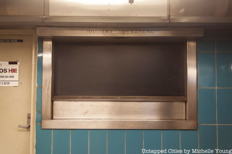Most straphangers who pass through the Brooklyn Borough Hall subway station barely notice the two darkened windows that are set within the blue tiling on the upper level of the station. But look carefully and you will see the faded words “COMMUTER BANKING” at the top. On the lower part of the window, the hours are still visible: “MONDAY THROUGH THURSDAY 8A.M. TO 6 P.M.” as well as a small, yellowed button that would have summoned the teller.