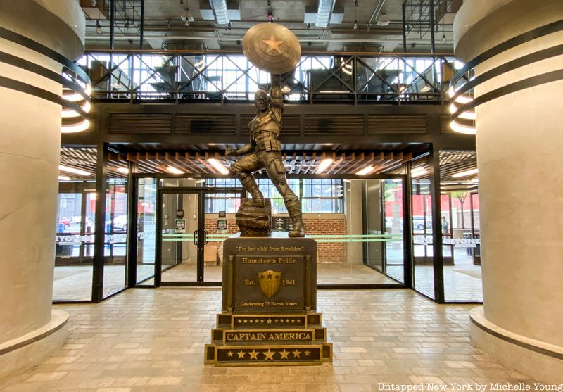Additional controversy over the statue was rooted in Captain America’s origins. In the comic books, his alter ego Steve Rogers is from the Lower East Side and was the child of Irish immigrants. The film, and more recent comics, shifted Captain America’s origins to Brooklyn. Purists of the comic books protested that the statue should rightfully be in Manhattan. The sculpture was then gifted by Disney, the parent company of Marvel to Liberty View Industrial Plaza in the fall of 2016. Ian R. Siegel, Senior Project Manager at Salmar Properties says that the sculpture needed to find a permanent home in Brooklyn and they felt that the 1918 former U.S. Navy building “was the perfect home.” He adds that a lot of Marvel fans of all ages come by to take photographs with the sculpture.