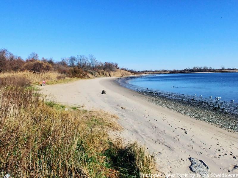Plumb Beach is a hidden beach near Gerritsen Beach, partly visible from the southern end of Gerritsen Avenue. The small beach attracts kiteboarding enthusiasts due to a southerly sea breeze. Despite heavy beach erosion, the beach is also a habitat for horseshoe crabs every May and June. The beach was originally a separate island until the nearby Hog Creek was filled in with the creation of the Belt Parkway. It is likely the beach’s name derives from when sailors stopped on the island and ate native beach plums. Plumb Beach was a popular destination around the turn of the 20th century when a ferry connected it to Sheepshead Bay, Barren Island, and Breezy Point.