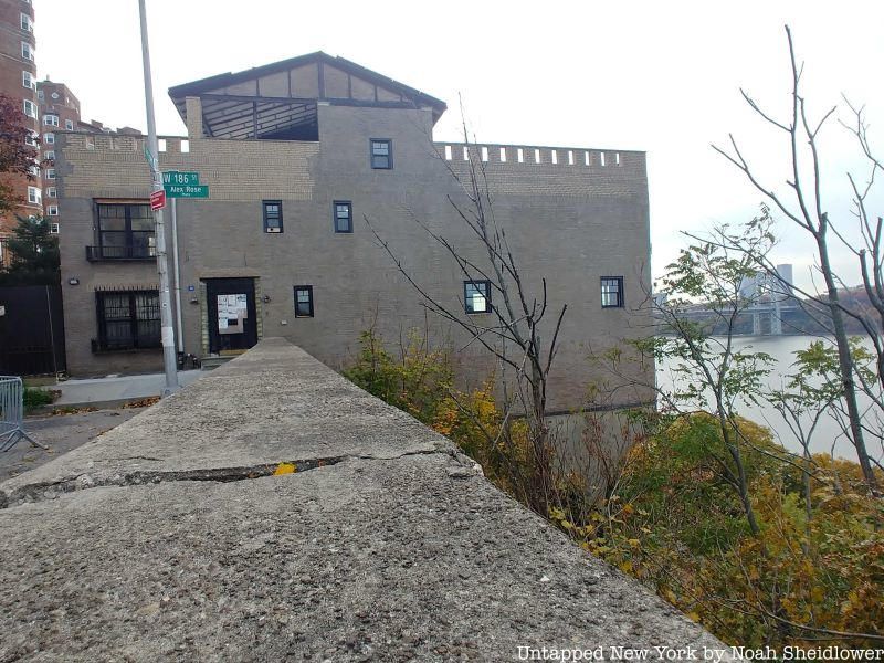 The other subway entrance in the neighborhood, the 184th Street entrance of the 181st Street station on Overlook Terrace, seems to jut off into nothingness from the outside as a rogue stone structure with amber-colored doors. The 184th Street and Fort Washington Avenue entrance also has a unique character, with a carved sign reading “SUBWAY” and a patterned central archway.
