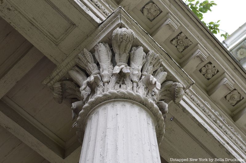 When Davis built Litchfield Villa, he already had extensive architectural practices that he transferred from property to property. One architectural element that he often used were columns covered in corn and wheat. These wooden columns are on the right side of the house and pay homage to two native plants of New York.