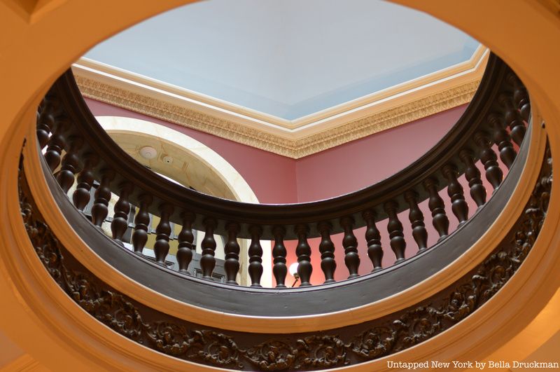 A rotunda welcomes guests as they enter Litchfield Villa. This is the only aspect of the villa open to the public. A large skylight illuminates the room, bringing sunlight into the otherwise dimly lit room. To the left, a double staircase leads to the Gold Room, the only part of the house with surviving plasterwork. Decorated in the Rococo Style, the Gold Room contains elaborate furniture and decorations. The room once held two Corinthian columns, which were not in fact decorated with wheat and corn.