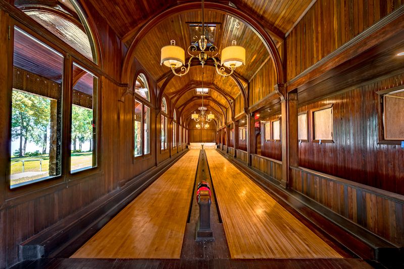Said to be one of the first regulation bowling alleys in the nation, the two alley bowling lane survives to this day. When the National Trust for Historic Preservation gained possession of the mansion in 1961, they found that the bowling alley had fallen into disrepair after decades of neglect. Over the next six decades, many would work to refurbish the bowling alley, often pausing when money ran out. Officially completed since 2017, tourists can visit the bowling alley and book the lanes for private events.