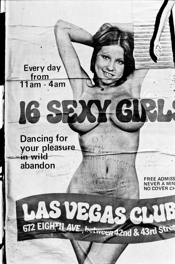 This picture taken by Rothstein in 1978 captures one of many posters for Times Square’s strip clubs and peep shows. Posters such as this were common throughout the Times Square neighborhood and the businesses which posted them were constantly busy with male customers. The area remained stimulated with the sex industry until the 1990s movement pushed by Mayor Rudolph Giuliani to revamp 42nd Street into the tourism powerhouse which it is, today but elements of seedy Times Square still exist if you know where to look. You can join our upcoming tour this weekend of the Remnants of Gritty Times Square to discover them!
