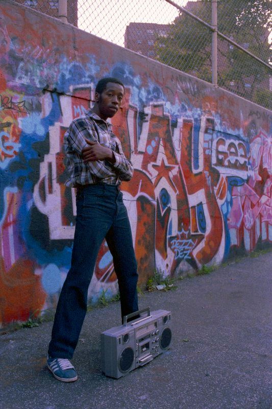 DJAY KSlay and crew, 102nd St. East Harlem, NY 1983. © 2018 Henry Chalfant / Artists Rights Society (ARS), New York. Courtesy Eric Firestone Gallery, New York.