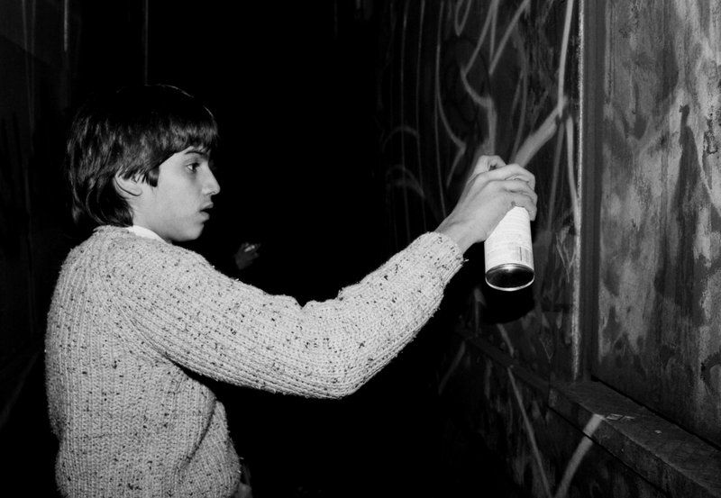 © 2018 Henry Chalfant / Artists Rights Society (ARS), New York. Courtesy Eric Firestone Gallery, New York. Mare 139 paints inside the New Lots train yard, East New York, NY 1981.