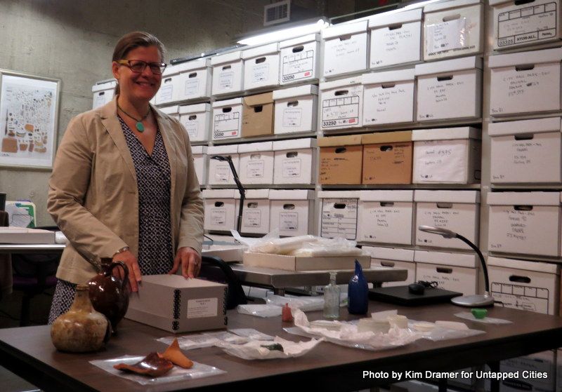 Enter Amanda Sutphin, an urban archaeologist working for the New York City Landmarks Preservation Commission. Sutphin might be called the city’s quintessential underground woman. She spends her days in the city’s underground, climate-controlled archaeological repository. Here, she works with with artifacts that often spent centuries underground before resurfacing in New York City during archaeological excavations.