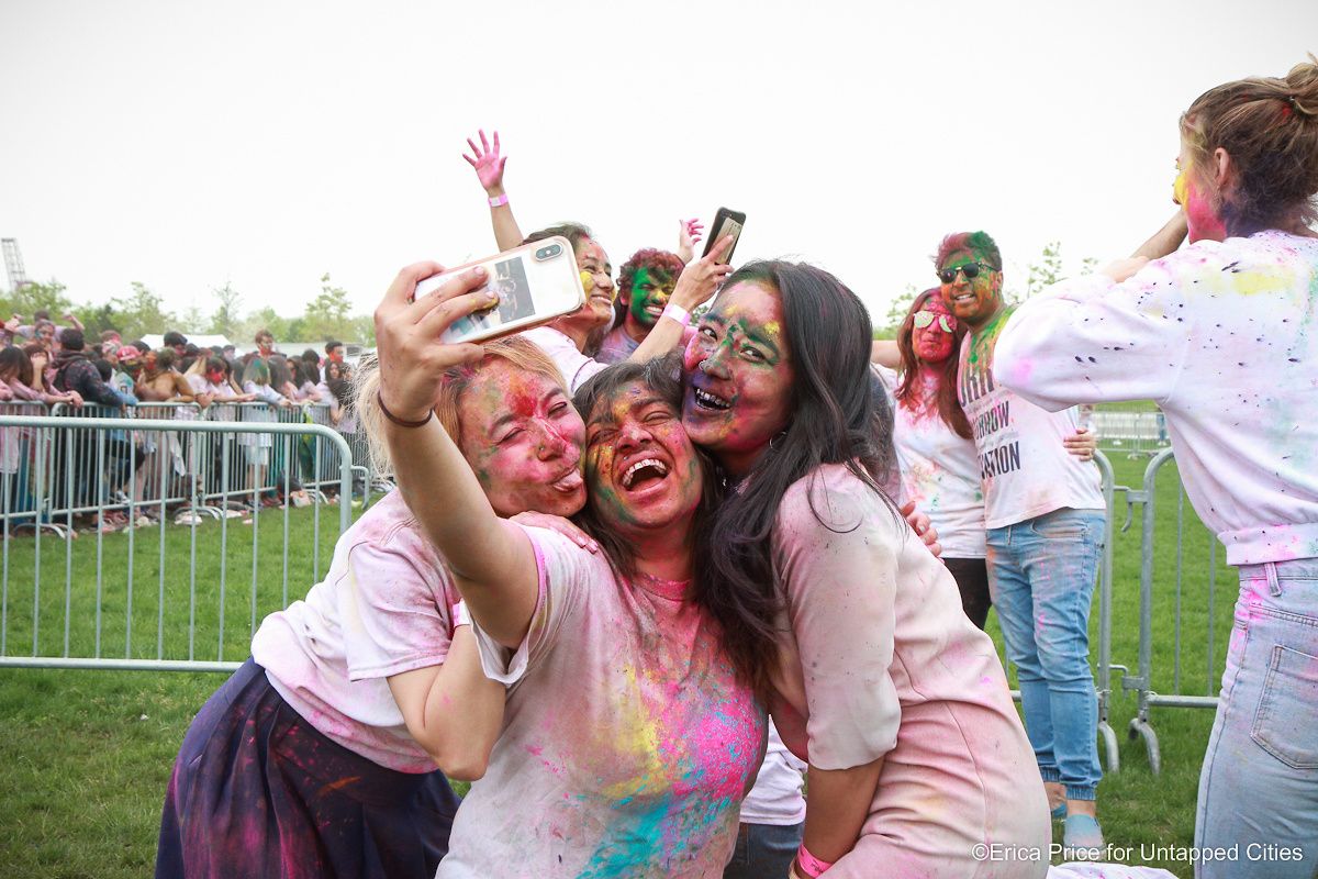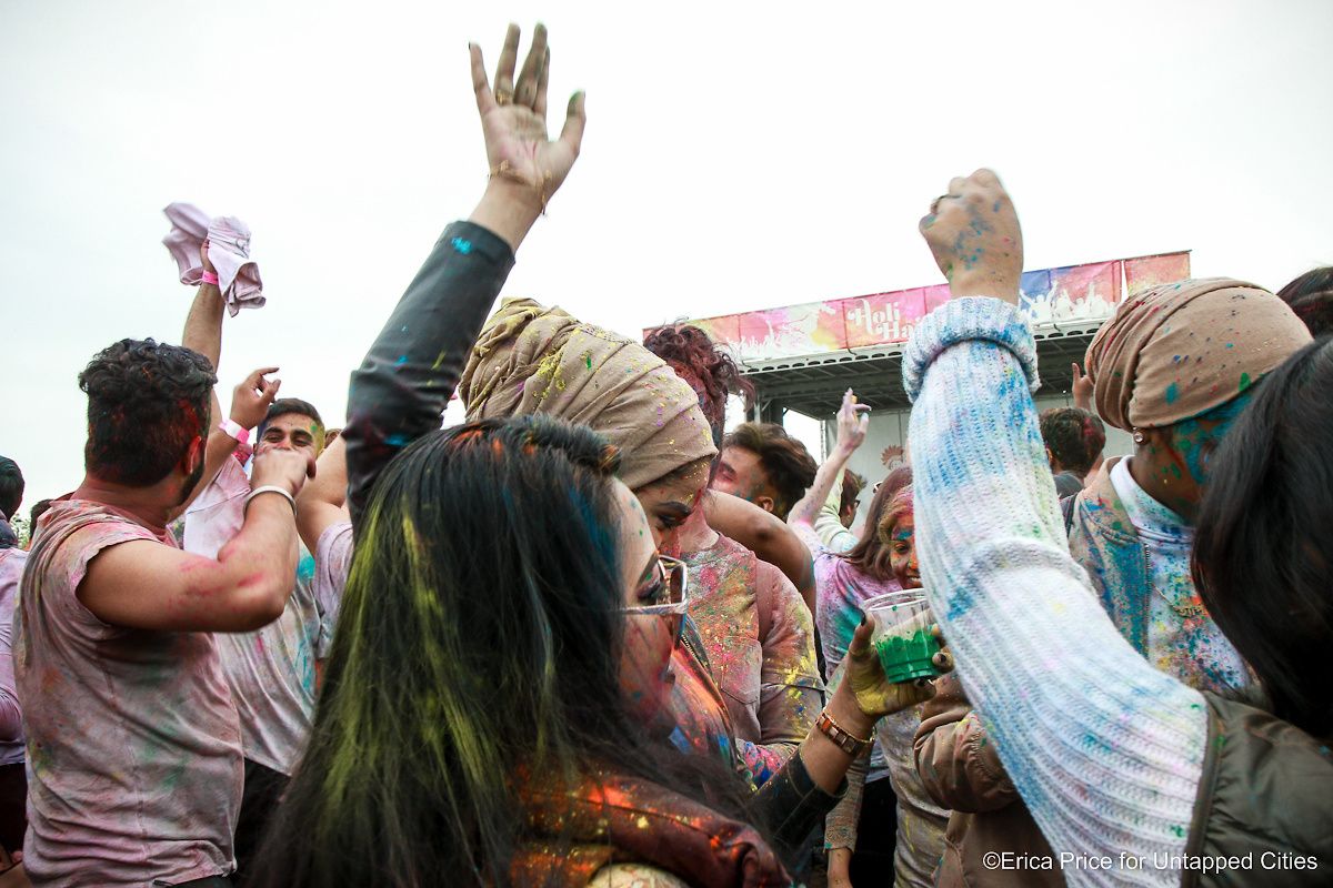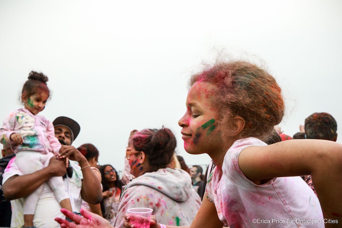 The gloomy forecast didn’t dampen the spirits of those who turned out for “the happiest festival of New York” this past Saturday. Instead, hundreds of visitors of all ages, races and creeds gathered together on Governor Island’s Play Lawn to participate in Holi Hai, an ancient Hindu festival that’s now celebrated around the world to welcome spring. Untapped Cities contributor, Erica Price, was there to capture the magic (and mess) that unfolded throughout the day-long party.