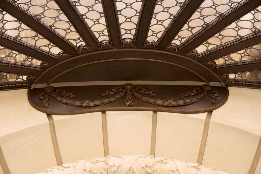 The process to restore the canopy was an arduous one. According to the Cooper Hewitt Smithsonian Design Museum, each glass piece had to be cleaned and re-leaded. Additionally, water damage and prior remedies — which included the used of fastener holes and sealants detrimental to the bronze — were corrected. During this procedure, it was discovered that all the glass was original. You can see photos of the restored canopy below: