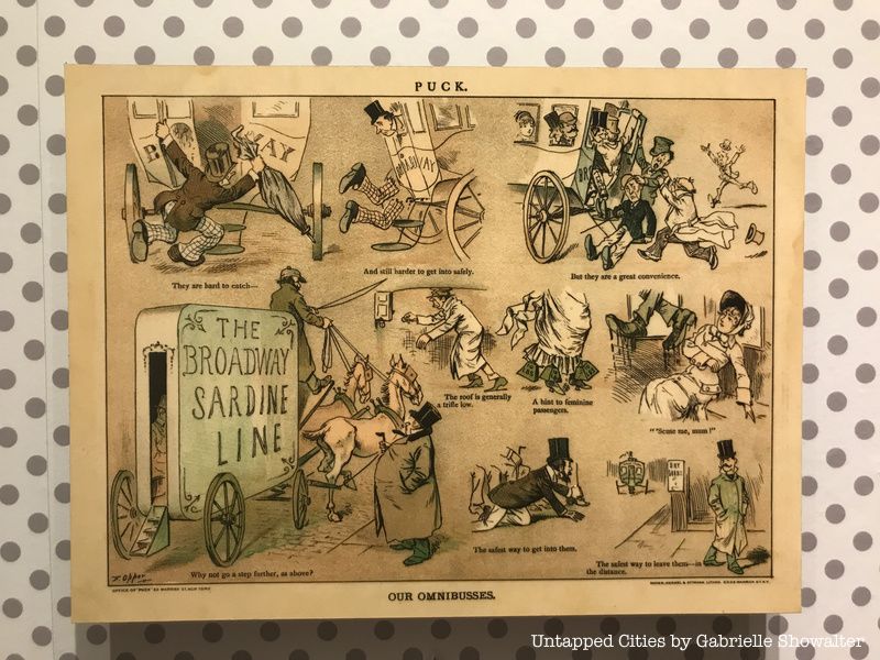 Before underground subways, New Yorkers rode 10-people omnibuses, as seen in Frederick Burr Opper’s cartoon “Our Omnibuses” (1881)