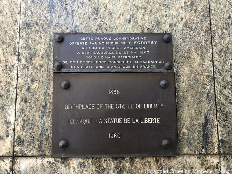 If you look more closely at the building, which holds the Clinique International du Parc Monceau,” you’ll find that on the side of the building, next to a driveway there’s a long forgotten plaque installed in 1960 to commemorate the birthplace of the Statue of Liberty. It reads in French, “Cette plaque commemorative offerte par Monsieur Milt Forrest au nom du people American a ete inauguree le 23 Mai 1960 sous le haut patronage de son excellence Monsieur L’Ambassadeur des Etats Unis d’Amerique en France.” Translated, it reads” This commemorative plaque, donated by Mr. Milt Forrest, on behalf of the American people was inaugurated on May 23, 1960 under the patronage of his Excellency the Ambassador of the United States of America in France.”