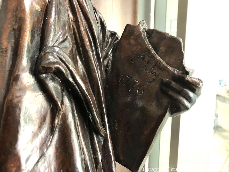 The final version of the Statue of Liberty has the year in roman numerals, as well as the four in July.