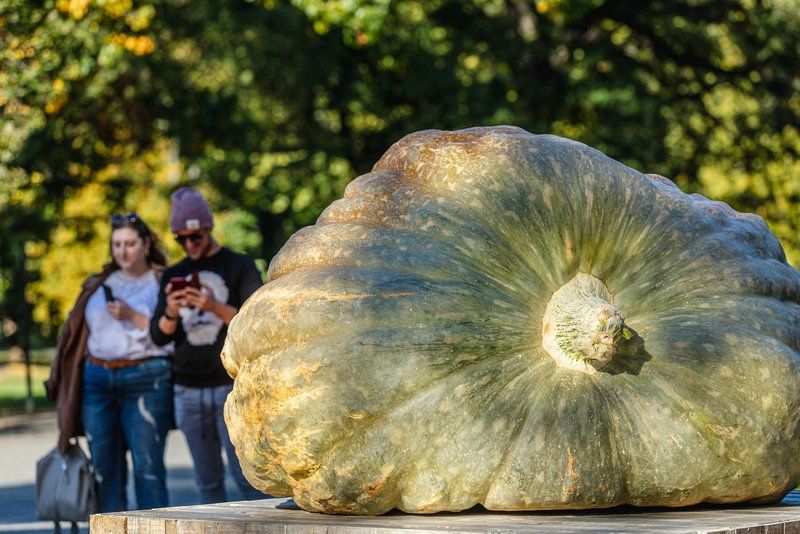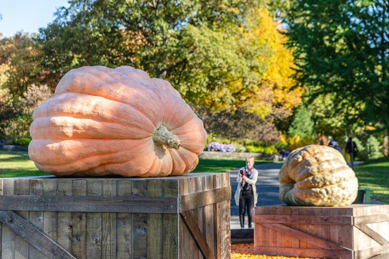 The pumpkins are at the New York Botanical Garden in collaboration with an organization called the Great Pumpkin Commonwealth (GPC), a governing body that consists of “80 official weigh-off sites worldwide, their supporting clubs, and growers.” The good news is that the GPC also encourages environmentally-friendly approaches, “using basic organic techniques that have shown extreme fruit development can be obtained without harming our surroundings.”