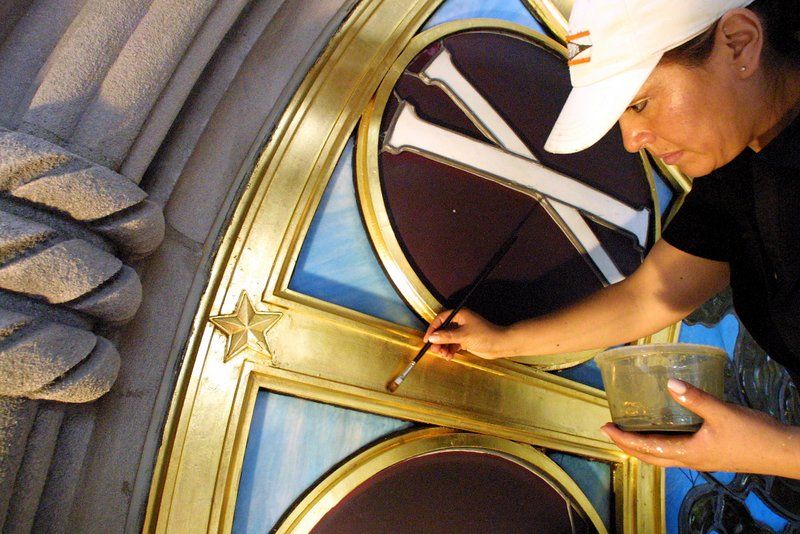 One of the Grand Central eagles during restoration. Photo credit: New York Transit Museum.