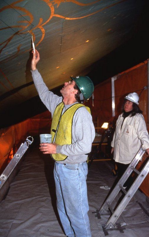 Grand Central Terminal’s main concourse ceiling under restoration. Photo credit: New York Transit Museum