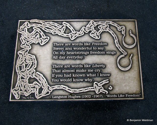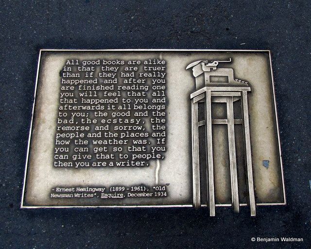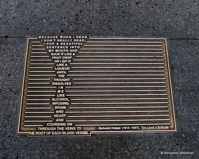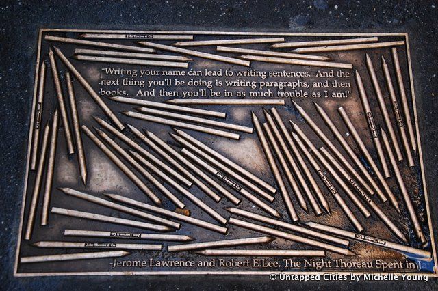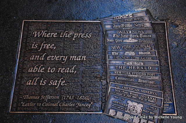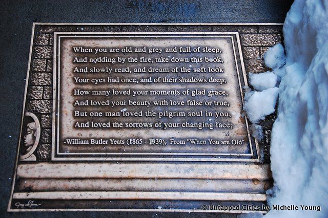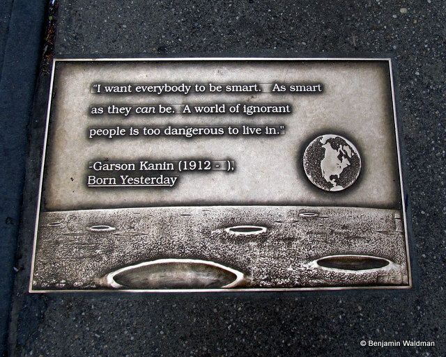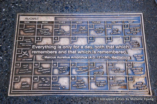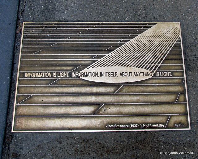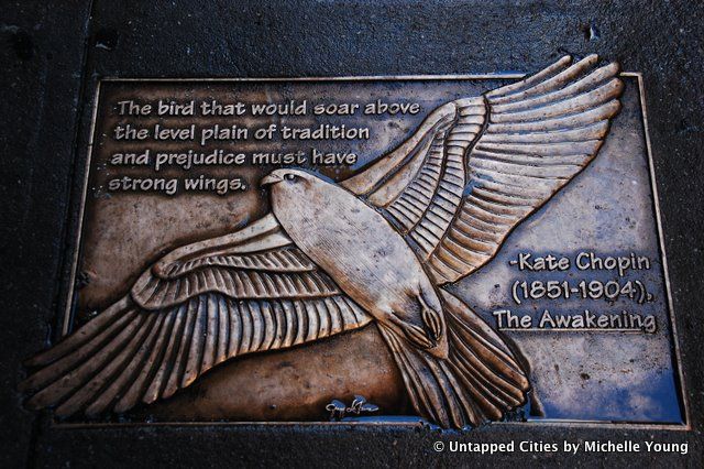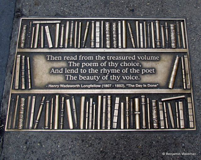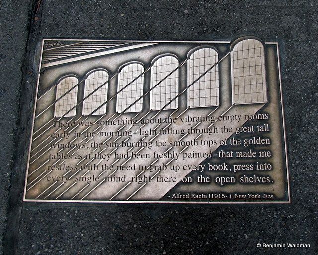 Another beloved sequence of mine is the “Library Walk” on 41st street between Madison and Park Avenue (near Bryant Park). It’s by sculptor Gregg Lefevre and is an ode to the great writers from antiquity to present. Many of the plaques appear more than once for some unknown reason. My favorite one is the one by Gertrude Stein that is backwards, with “this is not gibberish” in the top left hand corner. “The knowledge of different literatures frees one from the tyranny of the few,” reads another. It is also remarkable that many of the plaques break the fourth wall, extending onto the sidewalk.