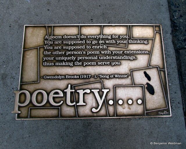 I think New Yorkers are a fan of sequences. Maybe it’s because our lives are so mobile–we’re always on our way somewhere. These are two sequences that I love in New York. The first is the poem in the tunnel between the Port Authority and Times Square, transferring from the A/C/E to the 1/2/3/7 trains. It reads: