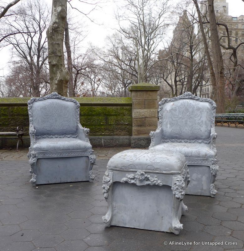 The installation, just eight blocks from the original mansion, turns the Plaza into a ballroom, and features opulent Louis XIV replica furniture created in concrete. Glynn sees the installation as a “ruin,” and included Twenty-six sofas, chairs, footstools, and arches grace the 3,500 square foot Plaza for viewing and the seating pleasure of the public.