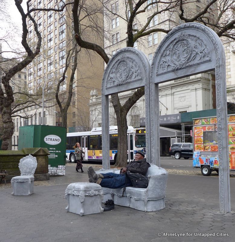 Still, there is a social commentary here, that should not be missed. The Public Art Fund writes that the public is invited to “enjoy the artist’s contemporary re-imagination of a historically exclusive space as one that is accessible to all. In this strange facsimile of a once opulent past, Glynn addresses the evolving face of a city: who has access to space in a society that is increasingly divided along socio-economic lines?”