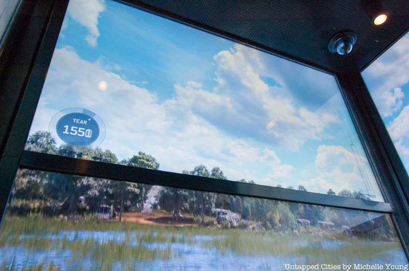 The New York Times has a video of what you’ll see when you take the elevators to the observatory atop One World Trade Center–and it’s pretty neat. An animated time lapse in all 5 elevators shows the development of the city’s skyline, from the 1500s to today from the perspective of your exact spot inside One World Trade Center. Immersive, floor to ceiling LED technology lines each elevator, and you’ll go from bedrock in the early 1500s to the natural shoreline of the early 1600s. But look closely, there seem to be some time errors in the 19th century.