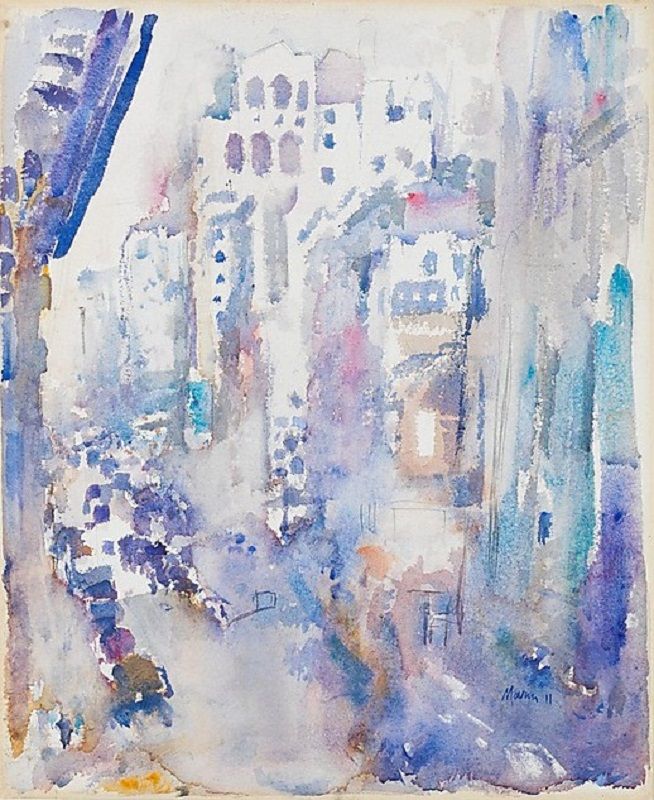 “From the Window of “291,” Looking Down Fifth Avenue” (1911) by John Marin. Via Wikimedia Commons