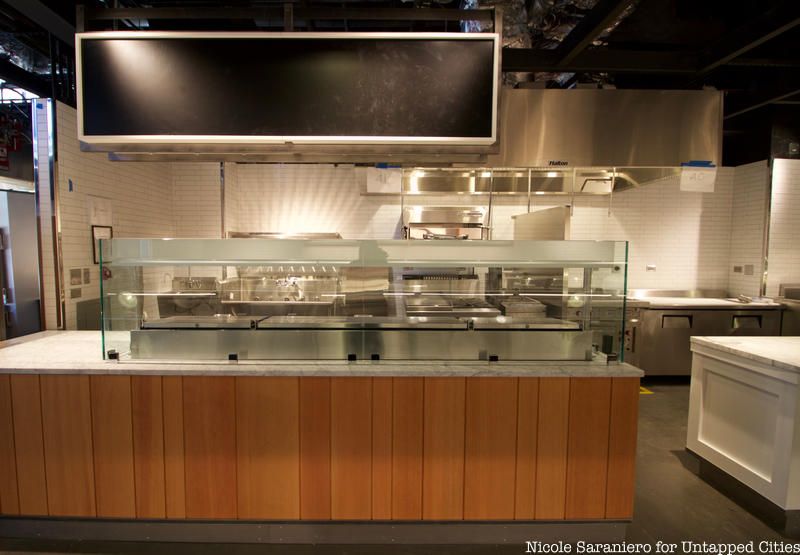 Measuring 37,000-square feet, the new market is roughly three times the size as the old one, with space for two full service restaurants, thirty-nine market vendors, a state-of-the-art demonstration kitchen, mezzanine level public seating, event office spaces and a sub-cellar vendor storage space. Inside the market, shoppers will find fourteen new vendors and twenty-five vendors from the original market. Returning vendors like Saxelby Cheesemongers and Essex Farms will be joined by newcomers such as Samesa, a contemporary Middle Eastern takeaway counter; Riverdel, a vegan specialty shop that crafts their very own in-house cheeses, and Chinatown Ice Cream Factory; a family run business from Chinatown now operated by the second generation. For some new vendors coming into the market, it will be their first brick and mortar location. The unique mix of vendors will offer affordable daily provisions, prepared and specialty foods. The new space allows existing vendors to expand their current offerings with more room to stock a diverse array of goods and install food preparation equipment provided by the NYCEDC.