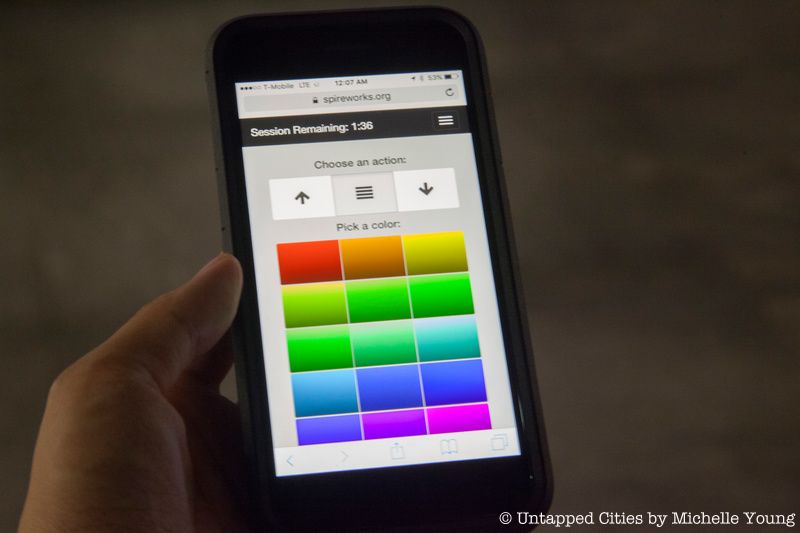 Spireworks, New York City’s latest exclusive “club,” is a web-based app that allows users to control the light color atop two of New York’s skyscraper spires, the Bank of America Tower at One Bryant Park and 4 Times Square. Each night, after sunset, users are presented with an interface for two minutes that allows them to choose from a pallet of eighteen colors that will change the color of the spire of your choosing between the two available buildings. The color requests are sorted by cloud-hosted software and then sent to the lights that line the two spires.