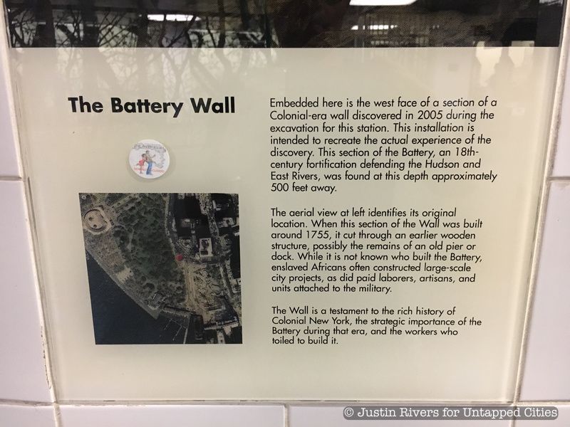According to Robert Tierney, the chairman of the New York City Landmarks Preservation Commission, the wall give rise to the park’s modern name. So, next time you head to the South Ferry Station, make sure to keep an eye out for this major segment of The Battery Wall, which is embedded into the tiled wall at the station’s entrance. Another L-shaped bastion segment is also on display at Castle Clinton in Battery Park.