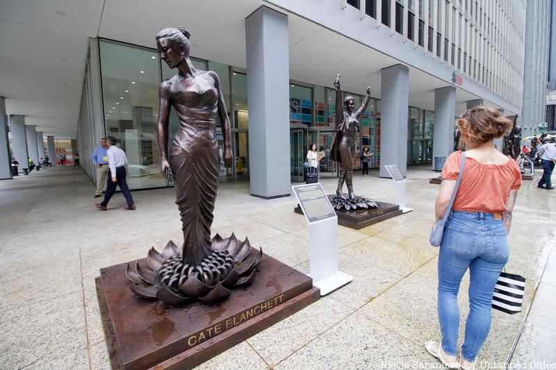 Standing tall in front of RXR Realty’s 1285 Avenue of the Americas you will find bronze representations of Oprah Winfrey, P!nk, Nicole Kidman, Jane Goodall, Cate Blanchett, Tererai Trent, Janet Mock, Tracy Dyson, Cheryl Strayed and Gabby Douglas. The subjects of the statues were chosen by a public vote. Each woman is standing atop a blooming flower of her choosing which represents her personality, beyond her technical and social accomplishments. With the addition of these ten figures, the percentage of female statues in the city to rises to 9%.